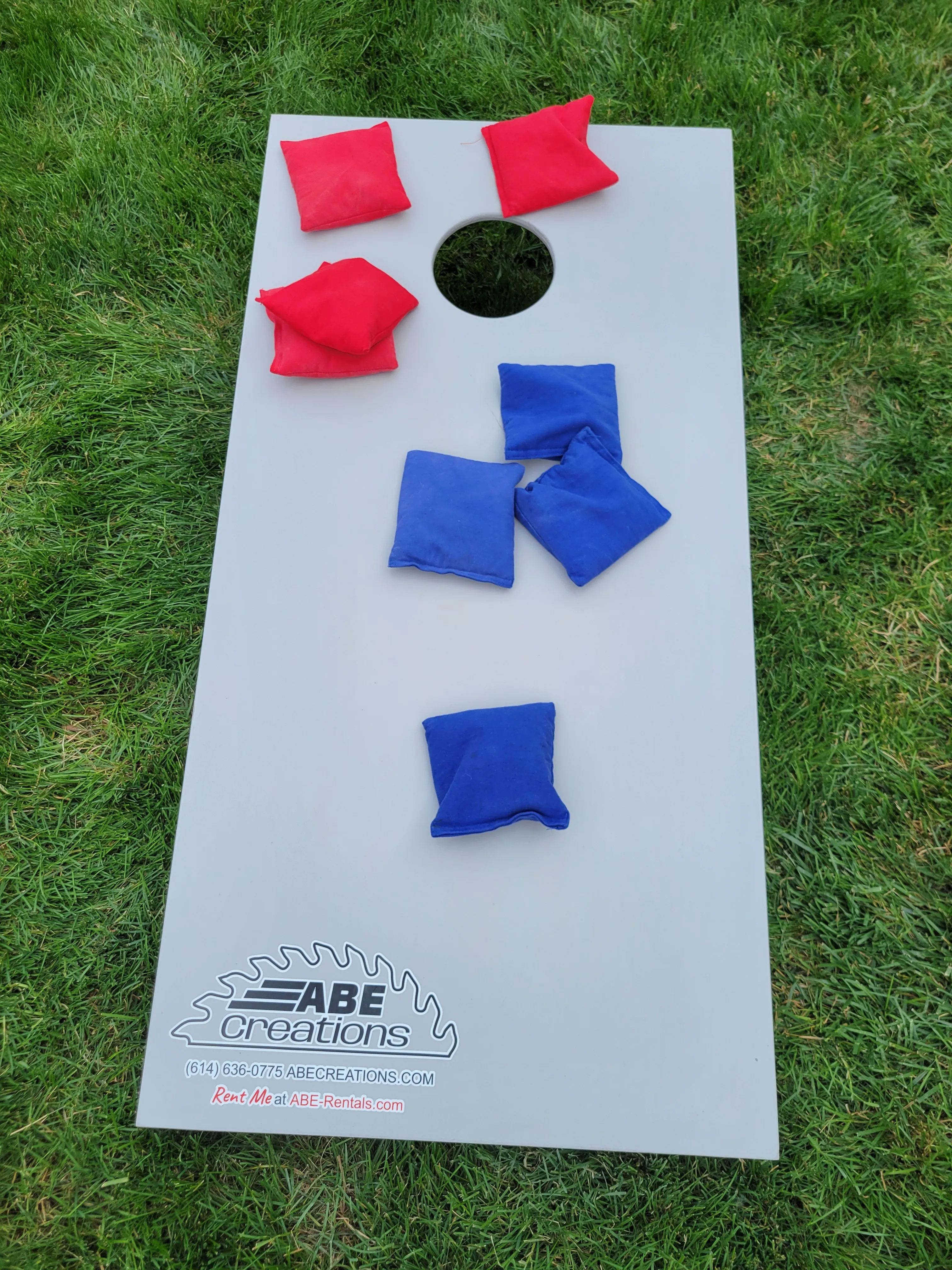"Elevate your next gathering with our premium Cornhole board set rentals! Each set includes a regulation-sized board and bags, making it perfect for backyard parties, weddings, corporate events, or any celebration. Rentals are available in 24-hour periods, with the flexibility to book for multiple days to suit your event's needs. You can rent multiple sets to keep the fun going all day long. Convenient delivery is available for a reasonable fee, so you can focus on enjoying your event while we handle the logistics. Book now and bring the excitement of Cornhole to your party!"